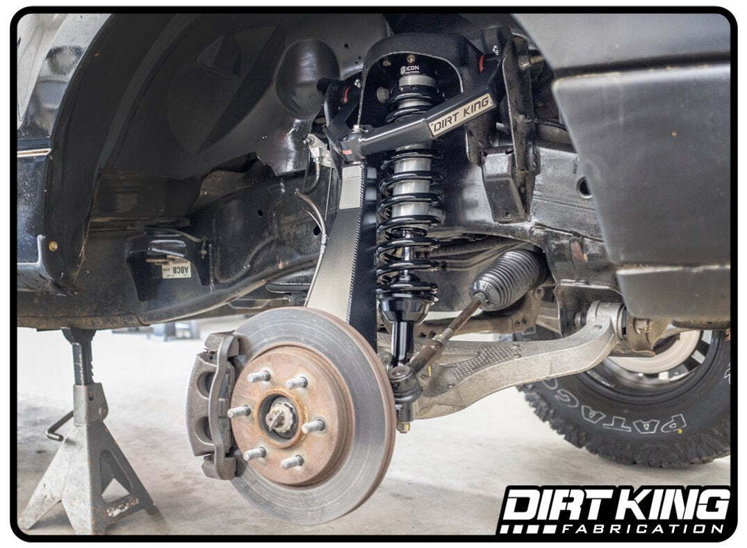 The Dirt King fabricated lift spindles raise the front end a true 3.5" without compromising the ride quality. These spindles are currently the only lift spindles available for the F-150âs that accept both factory or aftermarket upper and lower control arms. The spindles are the CAD designed and constructed from 1/4" thick steel plate. Included with the spindles is all necessary mounting hardware and detailed installation instructions.