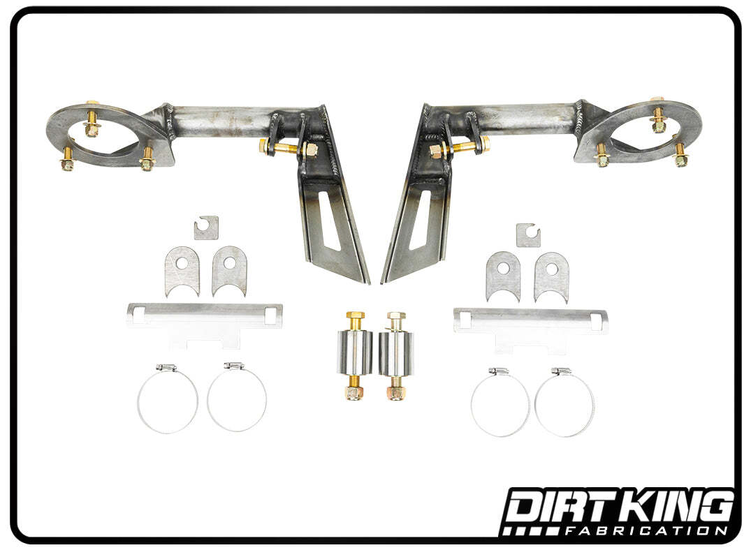 This product simplifies the installation process when adding bypass shocks to the Dirt King long travel kit. The key components of the shock hoops are prefabbed for ideal fitment. No measurements are required when installing this product with our spec bypasses, it just needs to be welded in place.
