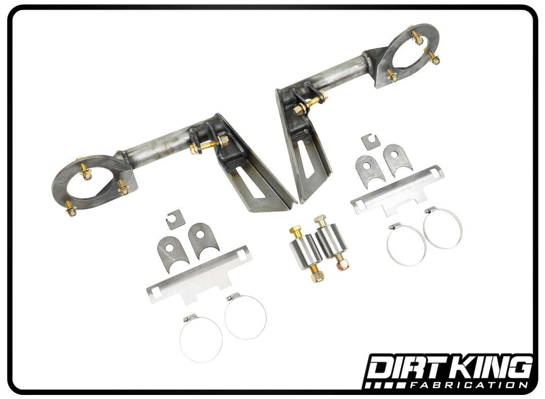 This product simplifies the installation process when adding bypass shocks to the Dirt King long travel kit or performance lower control arms. The key components of the shock hoops are prefabbed for ideal fitment. No measurements are required when installing this product with our spec bypasses, it just needs to be welded in place.