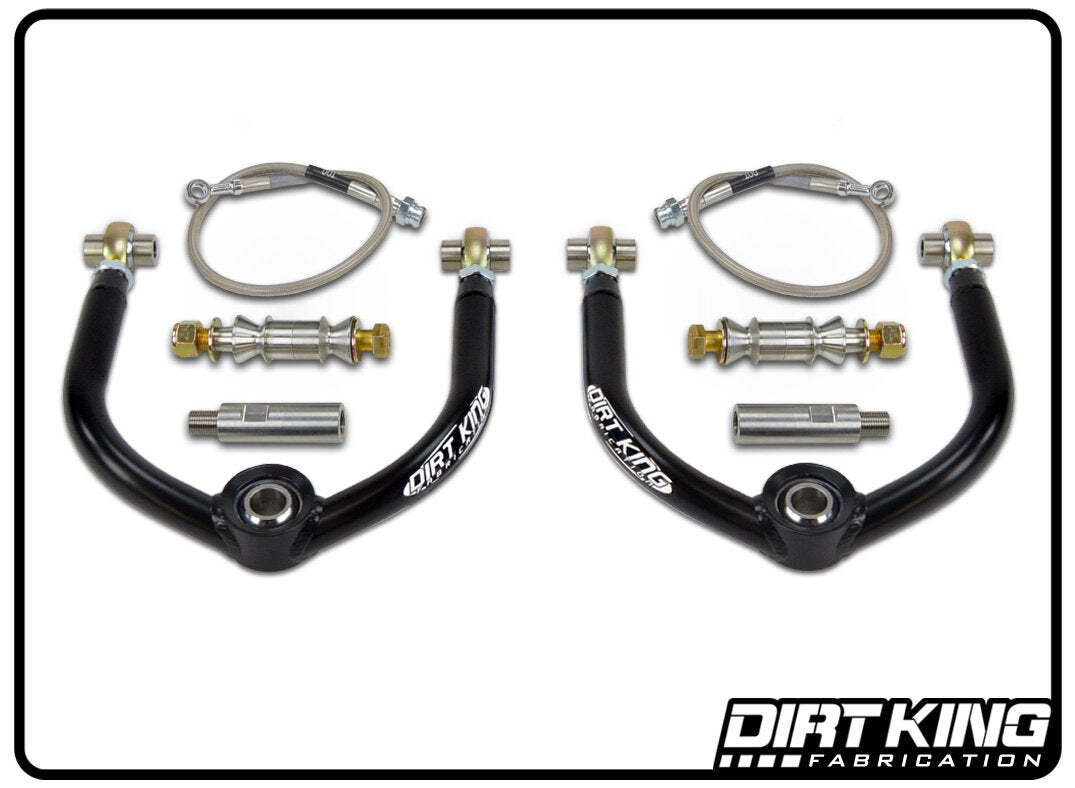 The Titan swap kit is the most affordable route to improve your vehicleâs front-end handling. This kit is developed to pair with Titan lower control arms to increase the front track width 3â per side. The kit is both 2WD and 4WD compatible along with the purchase of extended axle shafts. The upper control arms are designed with increased castor and repositioned pivot angles reducing stress on the joints. The increased castor allows for proper alignment and improved handling. We also replaced the weak factory ball joints with 1â stainless steel uniballs for maximum strength and increased articulation. To mount the arms to the spindle we include high grade 17-4 stainless steel misalignment spacers and military grade F911 hardware. All of the components on our upper control arms are rebuild-able or replaceable to make this product last a lifetime. The arms come preassembled and include detailed instructions for easy installation.