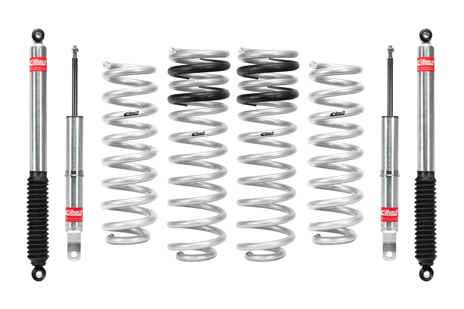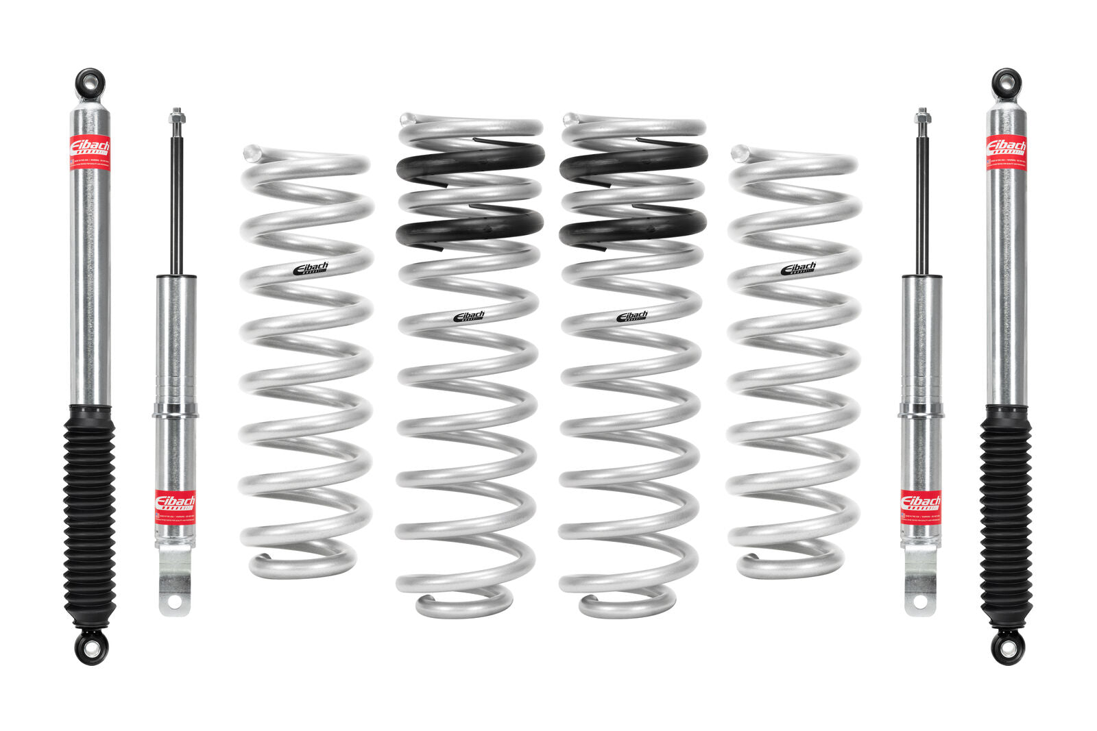 Matched system of lift springs and shocks designed for increased travel and performance Provides balanced ride quality, control and off-road capability Manufactured by Eibach using off-road race spring technology and OE quality standards Shocks individually tested for matched performance in each corner Made In U.S.A. EIBACH E80-27-001-01-22 & E80-27-001-01-22/02 PRO-TRUCK LIFT. Set of 4 Shocks + 2 Front Springs FITS RAM 2011 to 2014 1500 4WD V8. +2.75 in, +1.0 in