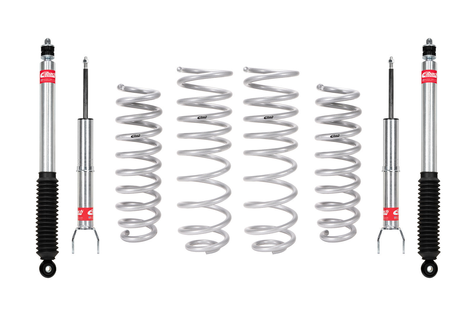 EIBACH E80-27-011-02-22 PRO-TRUCK LIFT Set of 4 Shocks + 2 Front Springs FITS RAM 1500 REBEL Crew Cab 4WD 3.0L, 6 Cyl. Twin Turbo Matched system of lift springs and shocks designed for increased travel and performance Provides balanced ride quality, control and off-road capability Manufactured by Eibach using off-road race spring technology and OE quality standards Shocks individually tested for matched performance in each corner Made In U.S.A. Includes Pro-Truck Lift Springs and Pro-Truck Sport Shocks. Listed front height is with Eibach spring on bottom clip of Eibach Sport shocks.