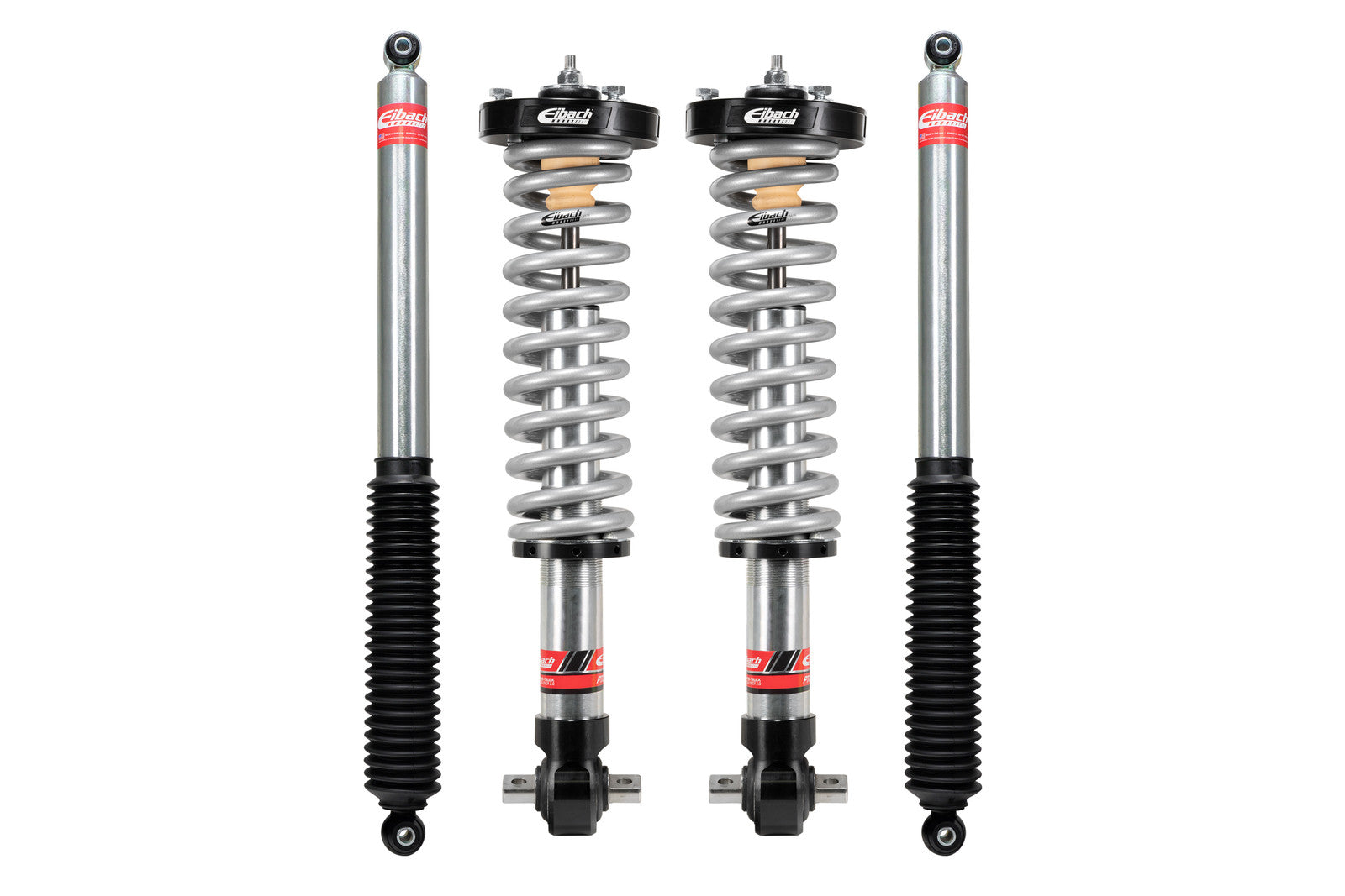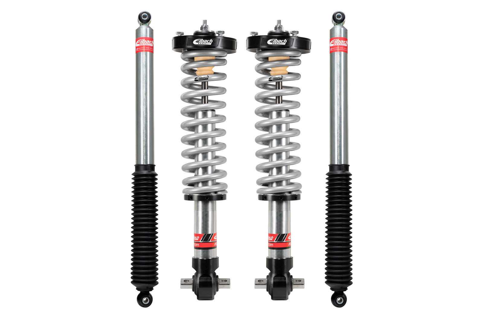 EIBACH E84-35-057-01-22/1 PRO-TRAIL INVERTED COIL OVER Pair of Front Coilovers + Rear Shocks FITS Ford Maverick TREMOR DOUBLE CAB AWD 2.0L EcoBoost Stage 2 system featuring Pro-Truck-Coilover 2.0's + Rear Sport Shocks Front Adjustable Threaded Spring Perch to Accommodate Increased Loads and Maximum Clearance. ERO Off-Road Race Spring Equipped and Compatible. Anodized 6061-T6 Billet Aluminum Coilover Mounts, 46mm Piston, Monotube Design with Nitrogen Filled Variable Force Valving. Individually Dyno Tested for Matched Performance and Reliability. Heavy Duty Bushing System also Cycle Tested. Engineered, Tested and Manufactured by Eibach in the U.S.A.